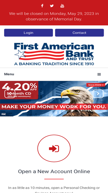 100%First American Bank in Illinois, Florida and Wisconsin offers valuable personal banking, business banking and loan solutions. Explore our offerings online.