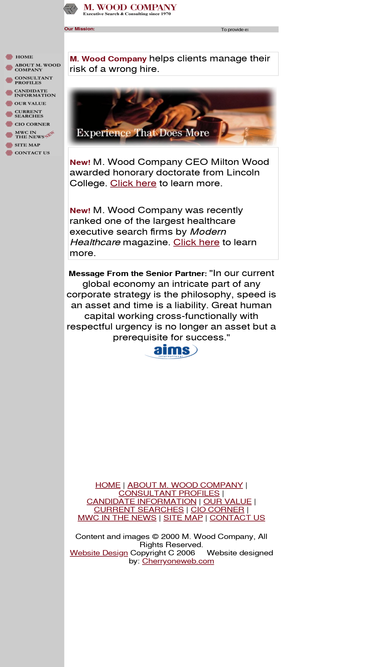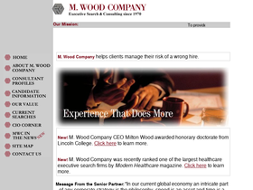 82%founded in 1970, m. wood company is a retained executive search consulting firm employing a unique consultative approach to filling middle and senior management positions in a wide array of industries and functions.