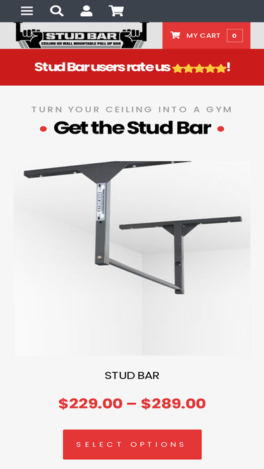 Stud Bar - ceiling or wall mountable pull up bar. Fixed-mount pull-up bar for CrossFit, chin ups or kipping. Install in your ceiling, rafters or wall studs.