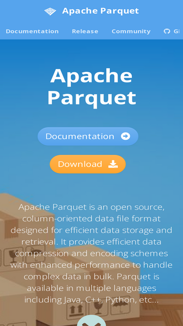 79%Apache Parquet Documentation Releases Apache Parquet is an open source, column-oriented data file format designed for efficient data storage and retrieval. It provides high performance compression and encoding schemes to handle complex data in bulk and is supported in many programming languages and analytics tools.