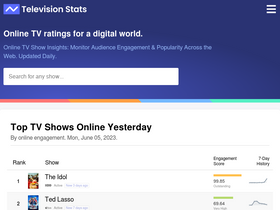 73%the best tv show data and online viewer engagement charts. finally track and compare shows by audience data.