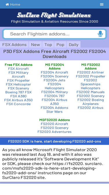 98%free addons and downloads for lockheed martin prepar3d, p3d, microsoft flight simulator and flight sim series. 1000's of freeware addons for your flight simulator! over 4000 pages of free downloads. more free addon planes than any other site! complete aircraft. freeware, quality files for p3d, (prepar3d), fsx, fs2004, fsx steam, flightsim world, combat flight simulator 3, combat flight simulator, plus tutorials. how to's, forums and information!