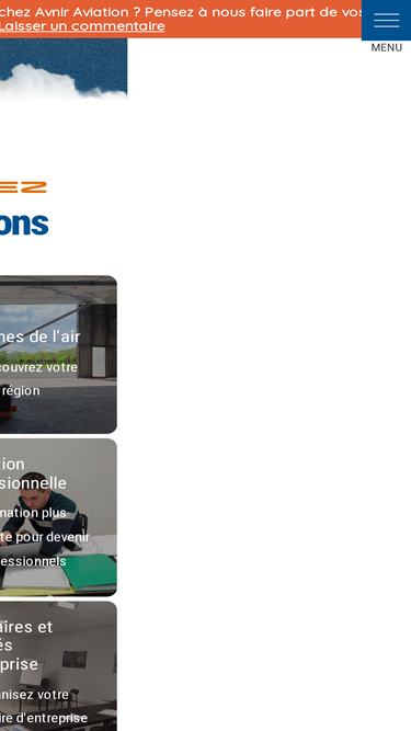 92%Avnir Aviation sera exceptionnellement fermée à l'accueil du public le samedi 20 mai 2023.Les vols prévus sont maintenus, mais il n'y aura pas d'accueil.Merci de votre compréhension.L'équipe Avnir Aviation.