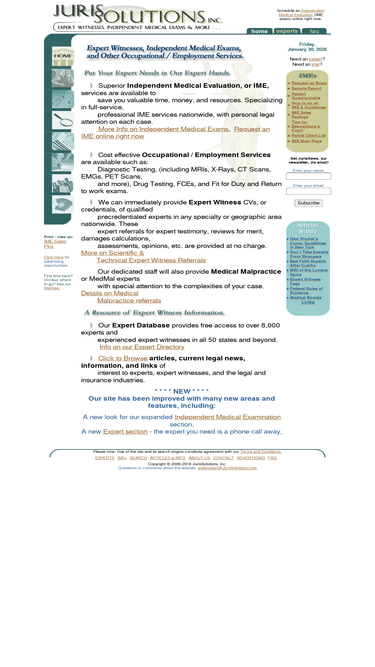 98%expert witnesses and full service independent medical exams, or imes, nationwide. scientific, technical, and medical experts for testimony, opinions, and independent medical evaluations. features fit for duty, return to work, and other occupational testing, including sars-cov-2, coronavirus, covid-19 antibody and swab testing.