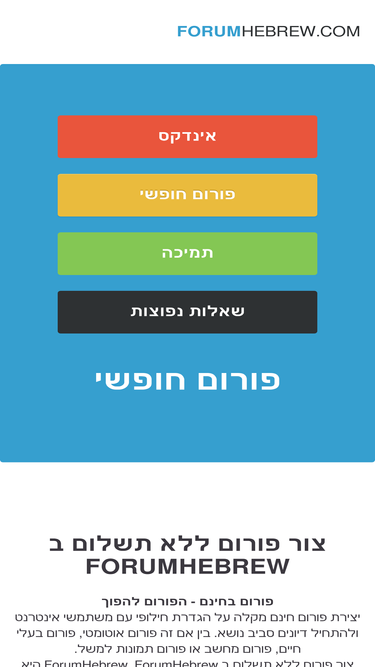 47%Free forum. יצירת פורום היא פשוטה ומהירה הודות לכלי החדש שפיתחנו. התחל לבנות את הפורום שלך, זה חינם ולוקח פחות מ – 30 שניות. Create a free forum - צור פורום ללא תשלום !