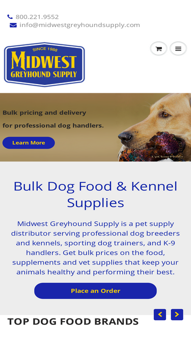 62%Midwest Greyhound Supply is a leading distributer of top dog food brands, supplements and supplies serving sporting dog trainers, professional dog breeders and kennels, and K9 trainers and handlers. Get bulk pricing and free delivery on dog food by the pallet.