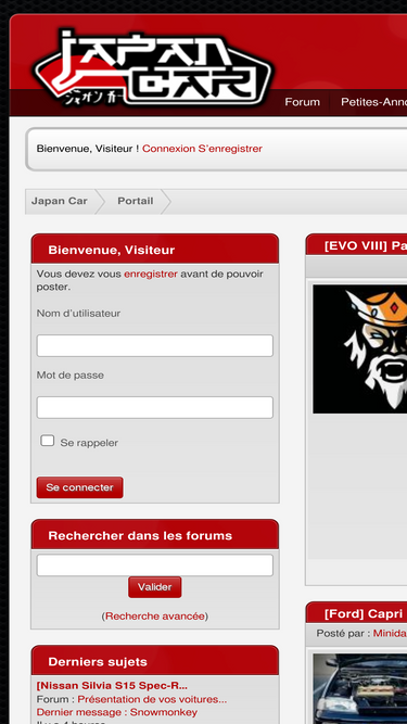 75%Portail de l'automobile asiatique favorisant l'échange de conseils mécanique, le partage de liens et de bons plans, la diffusion de petites-annonces et de code promo. Faite le plein d'info sur les assurance bonus malus, les pneus et pièces auto à prix réduit, Honda Civic ED7, Mazda RX-7, Nissan, Toyota, Mitsubishi, Subaru, Suzuki, et aussi Hyundai, Kia, véhicules de collection