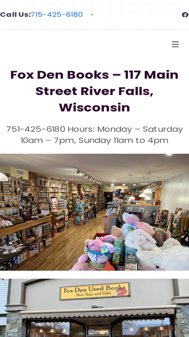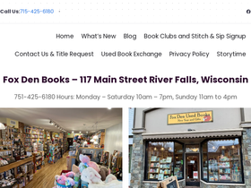 100%Fox Den Books – 117 Main Street River Falls, Wisconsin 715-425-6180 Hours: Monday – Saturday 10am – 7pm, Sunday 11am to 4pm Subscribers Get The Occasional Special Offer! Click Post to Find Out More and Please Leave Likes or Dislikes More