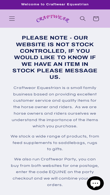 Craftwear Equestrian is a small family saddlery based on providing excellent customer service and quality items for the horse owner and riders.