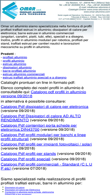 65%omar srl specializzati nella fornitura di profili profilati trafilati estrusi in alluminio; dissipatori di calore per elettronica;radiatori in alluminio per elettronica; barre estruse in alluminio commerciali, speciali e a disegno.
