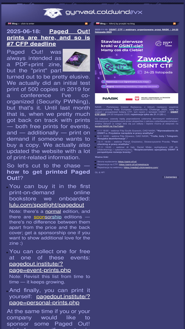 58%Mostly technical blog of Gynvael Coldwind, a security researcher and progammer.