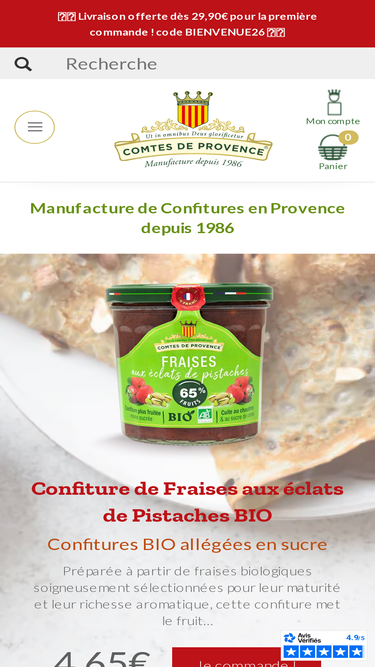91%Confiture BIO, confiture cuite au chaudron, confitures à l'ancienne, confits provençaux, marmelades anglaises. Les Comtes de Provence, manufacture de confitures depuis 1986.