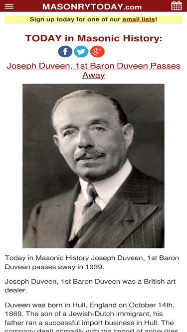 92%today in masonic history provides information about events in history tied to the oldest fraternal organization in the world, freemasonry.