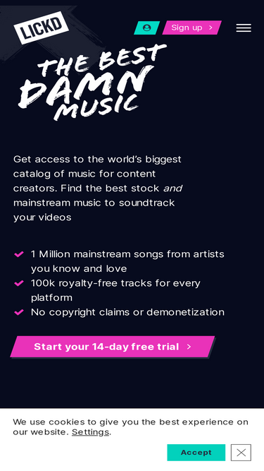 100%Discover human-made music, sound effects, motion graphics and LUTs from the curated licensing platform trusted by 4 million creators and teams. Get started for free.