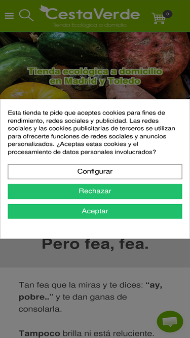 36%en www.recapte.com puedes escoger la fruta y verdura ecologica quieres que incluyamos en tu cesta de la compra para que la enviemos a tu domicilio