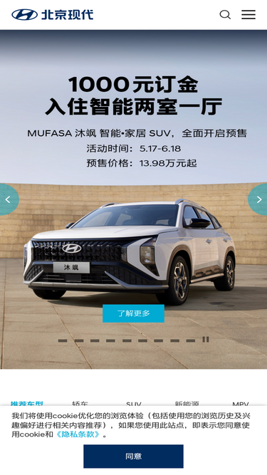 48%欢迎访问北京现代官方网站。您可以详细了解北京现代品牌理念、最新车型、前沿造车技术、精彩活动、售后服务等信息,快速查找授权经销商预约品鉴,与北京现代享受优质的出行体验。