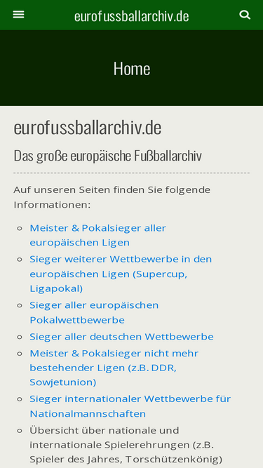 95%Meister & Pokalsieger aller europäischen Ligen sowie die Gewinner aller europäischen Wettbewerbe und noch weitere Daten zum Fussball in Europa