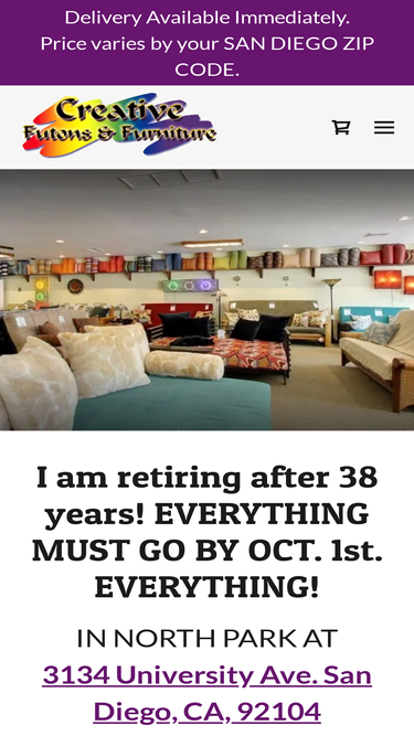 88%IN NORTH PARK AT 3134 University Ave. San Diego, CA, 92104 creativefutons@aol.com