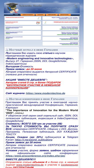 84%проект sworld -проведение научных мероприятий (научная конференция, заочная конференция, научно-практическая конференция, международная конференция, научный симпозиум, научный конгресс) с участием ученых разного возраста и статуса (студенты, аспиранты, докторанты, кандидаты и доктора наук) из россии, украины, казахстана, снг, формирование сборника научных трудов с цитированием в ринц (международная наукометрическая база), монографий, электронные публикации