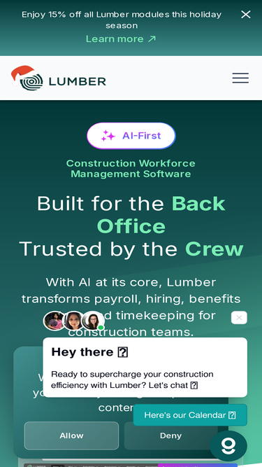 91%Reach out to Lumber for AI-powered construction workforce management software. Streamline payroll, scheduling, and management to build smarter and better.