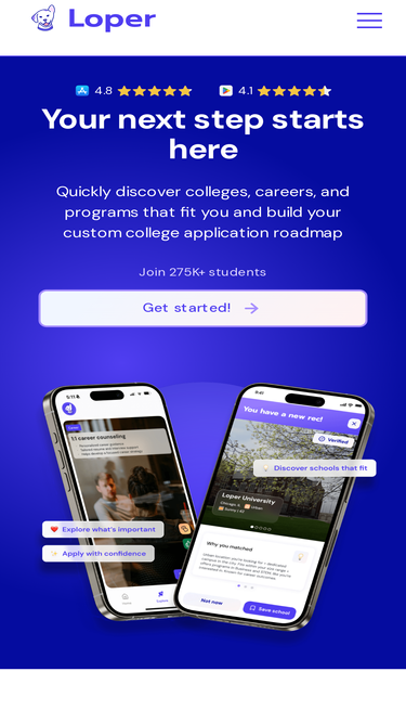 62%Confused by college apps? Loper’s App Center turns your school list into a personalized, step-by-step application plan: deadlines, tasks, reminders, and expert resources, all in one place.