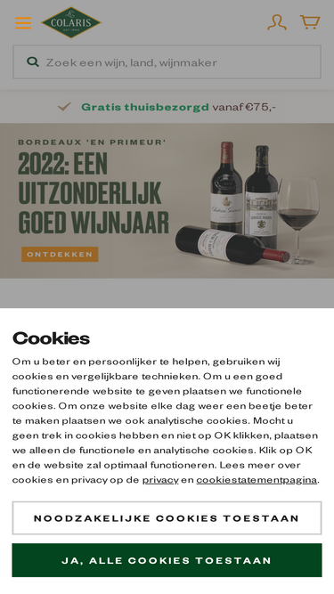 64%ontdek de beste wijnen ter wereld bij colaris. ✓ persoonlijk advies ✓ per fles te bestellen ✓ hofleverancier bij koninklijke beschikking ✓ eigen wijnkelder