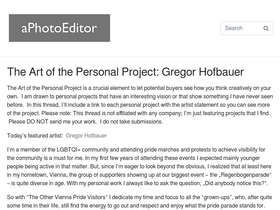 100%Jörg Colberg's online photography magazine, featuring photographer profiles, interviews, articles, and book reviews.