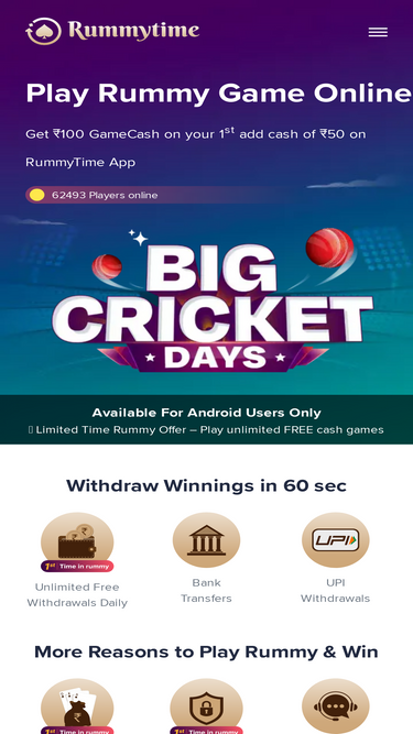 75%Rummytime offers online rummy games with cash prizes. Join now and play Indian Rummy games online for free or with real cash to win big!
