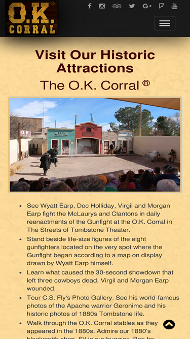 76%The O.K. Corral is the famous historic gunfight site in Tombstone, Arizona, where Wyatt Earp, Doc Holliday, Virgil and Morgan Earp fought the Clantons and McLaurys on October 26, 1881.