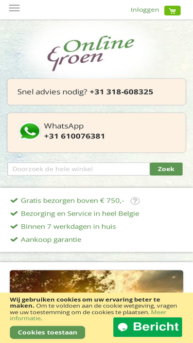 89%laat u niet langer om de tuin leiden. op deze website kan je grasduinen in het meest complete assortiment bomen en planten dat je op de belgische online markt kan vinden. wil je een boompje opzetten over je planten, aarzel zeker niet om gratis tuinadvies te vragen