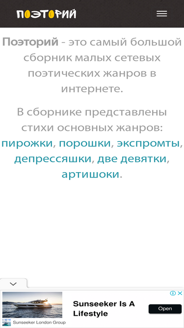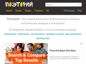 65%Крупнейший онлайн-архив русскоязычной микропоэзии. Пирожки, порошки, экспромты и другие малые поэтические формы.