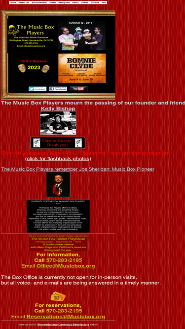 100%the music box players - a non-profit community theater company appearing at music box dinner playhouse. theatrical costume rentals and 'avenue q' puppet rentals available