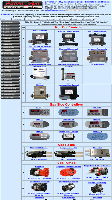 100%acura spa systems is the leading manufacturer of hot tub, jacuzzi, and spa parts, spa controls, spa lights and other spa system components.