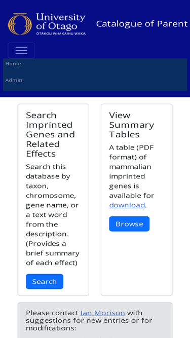 a searchable database catalogue of imprinted genes and parent-of-origin effects in humans and animals