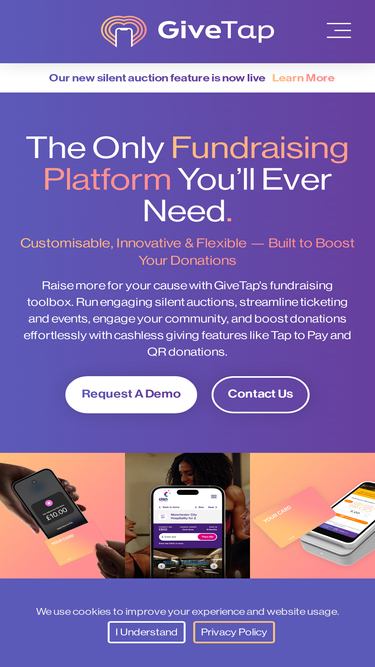 76%Take donations on the go with the GiveTap app. Accept tap-to-pay donations, use card readers, track real-time stats, collect Gift Aid and boost fundraising with mobile freedom.