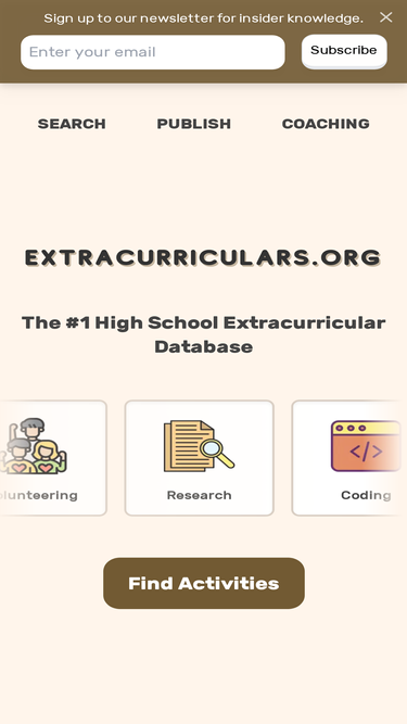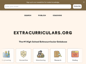 73%Showcase your high school extracurricular opportunity to a large audience by publishing it on extracurriculars.org, a non-profit organization dedicated to cataloging and listing student opportunities.