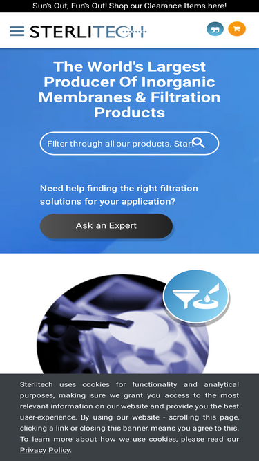 71%sterlitech corporation is the world's largest producer of inorganic membranes & filtration products.