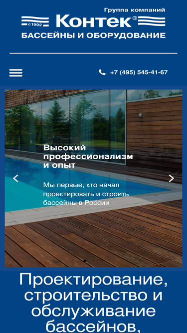 83%компания «лагуна» предлагает услуги по проектированию, строительству и монтажу бассейнов под ключ в москве и московской области, а также услуги по реконструкции, ремонту и обслуживанию бассейнов. звоните +7 (495) 514-33-65