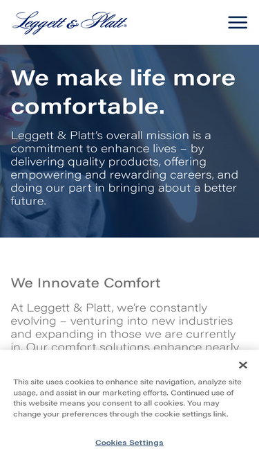 Leggett & Platt® enhance people’s lives worldwide by designing and manufacturing innovative, distinctive products and components for use in bedding, furniture, seating, homes, offices, airplanes, and automobiles.