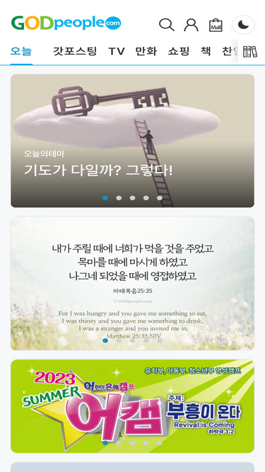 80%크리스천들에게 유익한 컨텐츠와 서비스를 제공합니다. 갓피플성경 앱, 갓포스팅, 갓피플TV, 만화, 책, 쇼핑, 찬양, 취업, 바탕화면
