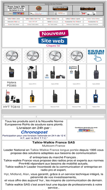 99%hyt france, talkie-walkie france, spécialiste en talkies walkies, pros et experts, depuis 1995 avec les marques: hyt, midland ,alan en france