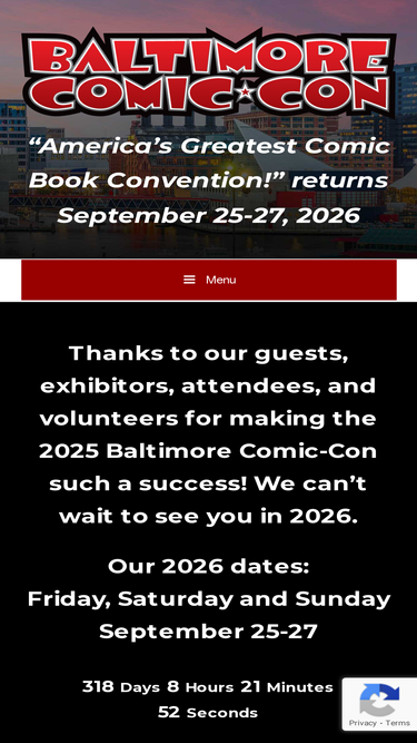 98%Questions regarding the Baltimore Comic-Con? Please contact us using the form below or email us directly at general@baltimorecomiccon.com. Please do not send unsolicited offers for products or services, as they will be ignored. Thank you for your consideration.