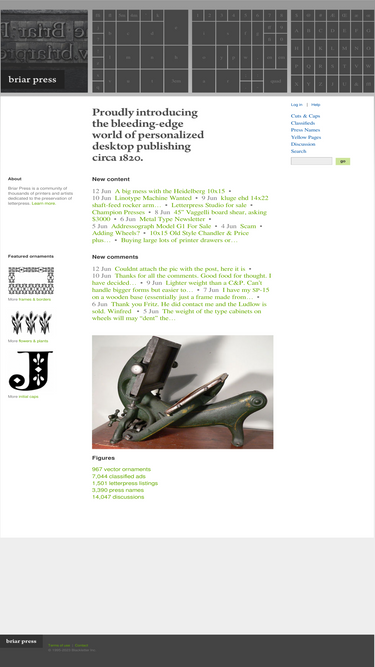 53%briar press: a letterpress community. museum of printing presses, letterpress classifieds, printer's yellow pages, and vintage postscript artwork for download.