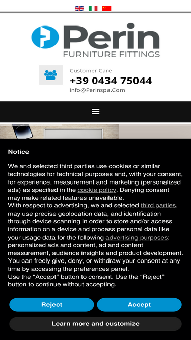 96%perin spa is a leading specialist for furniture fittings – is specialized in the production of quality accessories and ironmongery for the furniture industry – made in italy