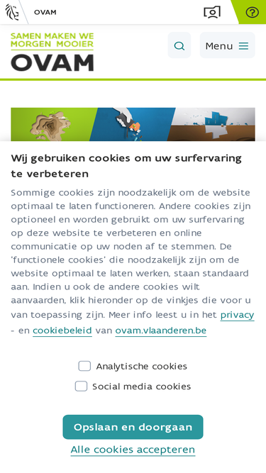 86%De OVAM streeft samen met u naar een duurzaam afval- en materialenbeheer en een propere bodem in Vlaanderen. Selecteer hieronder het thema waar u concrete informatie over zoekt.