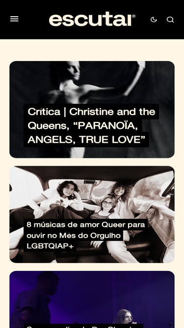 56%O escutai é a sua fonte de cultura pop nada óbvia na internet. Por aqui você encontra críticas e notícias sobre música, cinema e séries.
