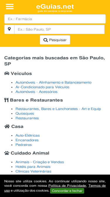 pesquise e encontre as melhores empresas, profissionais e prestadores de serviços de diversos segmentos na sua cidade e mais próximos de você. consulte por nome, categoria, endereço ou número de telefone. todas as informações da antiga lista telefônica, agora estão disponíveis de forma online, com avaliação de usuários, dados validados e ainda mais detalhes sobre os negócios e serviços locais. comece sua busca agora!