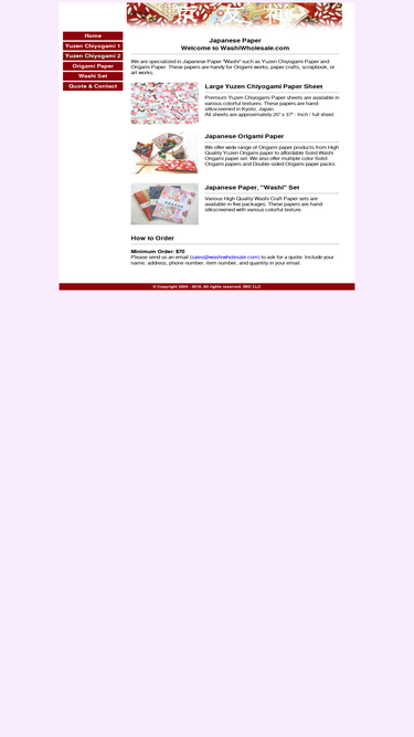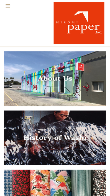 95%CONTACT:Toll Free: 1-866-479-2744Phone: 1-310-998-0098Fax: 1-310-998-0028Email: washi@hiromipaper.com SHOWROOM LOCATION: 9469 Jefferson Blvd Suite 117Culver City, CA 90232 HOURS: Monday-Friday: 9am-5pmSaturday: 11am-4pmSunday: CLOSED