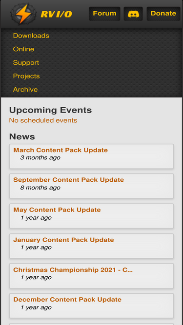 92%Donate. The website costs about 200 Euros per year (this includes server and domain costs). Donations are greatly appreciated and allow us to keep the website up and running while still maintaining our regular coffee intake.Sites hosted on this server:. . ReVolt I/O. RVGL Project. The Re-Volt Hideout Forum. Re-Volt Mat