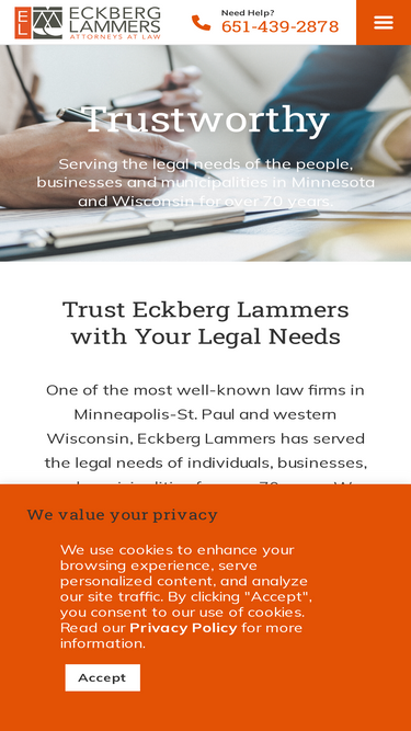 77%Law firm Eckberg Lammers, P.C. provides legal representation for businesses, individuals, and municipalities in Minnesota and Wisconsin.